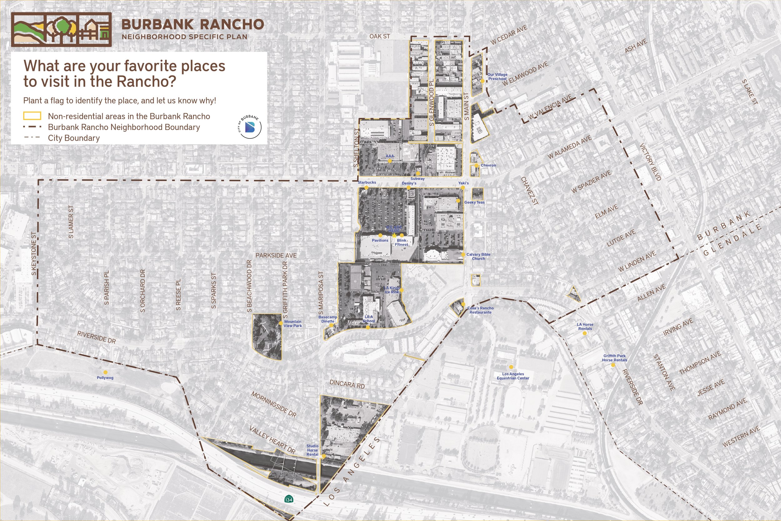 Check out the materials that were handed out at the event (see below). If you would like to provide your responses to any of the questions, please email them directly to the City Project Manager, Greg Mirza-Avakyan, at gmirzaavakyan@burbankca.gov. There will be additional opportunities in the coming months to provide more input.